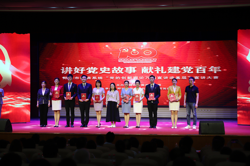 為慶祝中國共產(chǎn)黨成立100周年, 扎實開展黨史學(xué)習(xí)教育,5月26日上午,鄭州市國資系統(tǒng)“講好黨史故事·獻禮建黨百年”——“黨的創(chuàng)新理論萬場宣講進基層”宣講大賽在市總工會一樓職工大禮堂圓滿落下帷幕。來自市國資系統(tǒng)14家單位選送的15個宣講節(jié)目進入大賽決賽,鄭州地產(chǎn)集團選送的西流湖公司黨支部宣講節(jié)目《百年交響》榮獲三等獎。