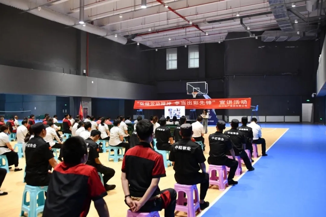 宣講團第一組赴鄭地奧體公司在奧體中心綜合訓(xùn)練館展開宣講,鄭地奧體、中航物業(yè)保潔及安保等一線員工共100余人參加了此次宣講活動。來自黨群黨支部王曉婕、人力資源黨支部馬遠俊、黃河兩岸公司黨支部吳林熹、都市開發(fā)公司黨支部馮靜、投資管理公司黨支部范瑩,從學習貫徹習近平總書記重要回信精神、“講好黃河故事”、“ 絲路精神”和共筑中國夢等方面,通過身邊人身邊事,以小見大,講述了一個個平凡而偉大的勞動者的故事,號召全體黨員同志進一步樹立勞動觀念、弘揚勞動精神,爭做出彩鄭地人,以一流的業(yè)績和實際行動擔當重任,為集團高質(zhì)量發(fā)展貢獻力量。