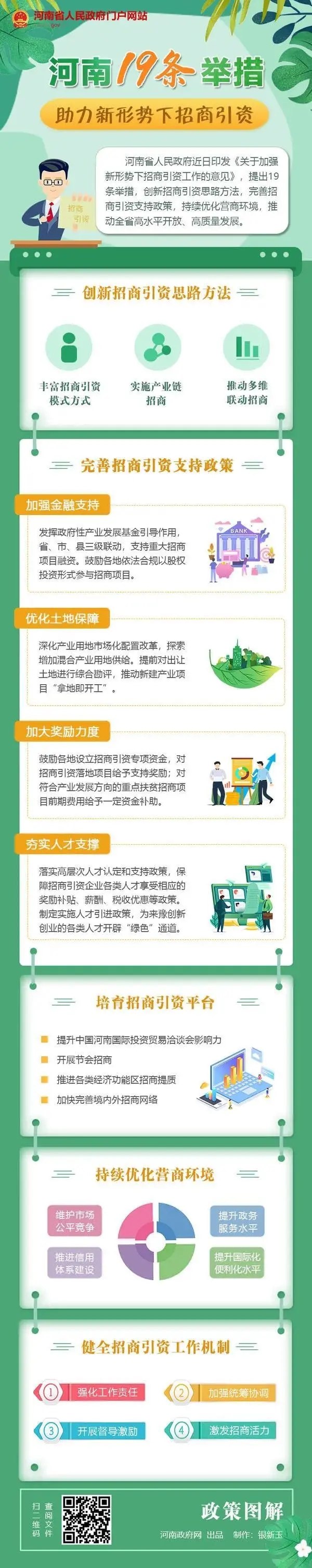 在新形勢下,河南如何做好招商引資工作?近日,河南省政府印發(fā)《關(guān)于加強(qiáng)新形勢下招商引資工作的意見》(以下簡稱《意見》),提出19條舉措,創(chuàng)新招商引資思路方法,完善招商引資支持政策,持續(xù)優(yōu)化營商環(huán)境,推動(dòng)全省高水平開放、高質(zhì)量發(fā)展。