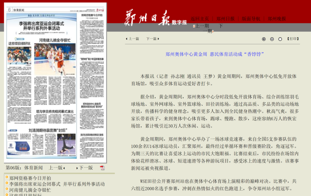 雙節(jié)黃金周期間,為豐富廣大市民假期出游選擇,鄭州奧體中心根據(jù)群眾喜聞樂見的休閑娛樂活動,充分發(fā)揮場館優(yōu)勢,開展場館低免開放、國際車展、運動賽事等一系列豐富多彩的惠民文體活動,在小長假期間,累計吸引近30萬人次來到鄭州奧體中心打卡精彩活動,受到央視新聞頻道、河南廣播電視臺、鄭州廣播電視臺、鄭州日報等官方媒體爭相報道。