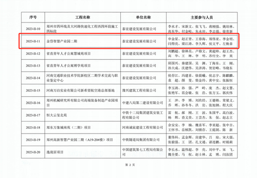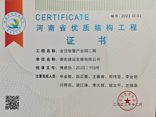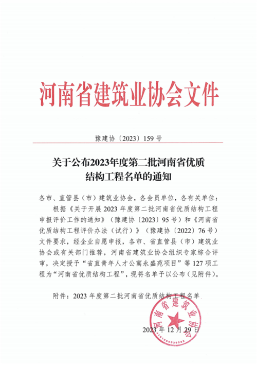 近日,河南省建筑業(yè)協(xié)會發(fā)布《關(guān)于公布2023年度第二批河南省優(yōu)質(zhì)結(jié)構(gòu)工程名單的通知》(豫建協(xié)〔2023〕159號),城發(fā)·金岱智慧產(chǎn)業(yè)園二期和龍湖金融中心外環(huán)7號樓兩項工程順利通過專家組考評,榮獲“2023年度河南省優(yōu)質(zhì)結(jié)構(gòu)工程”獎。