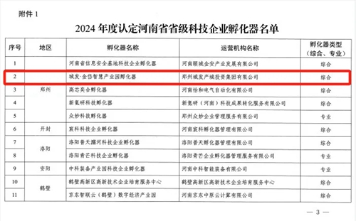 近日,河南省科學技術廳發(fā)布通知,公布2024年度河南省省級科技企業(yè)孵化器、河南省眾創(chuàng)空間的通知,經推薦、專家評審、核查、廳長辦公會研究、公示等程序,同意城發(fā)·金岱智慧產業(yè)園等21家單位認定為河南省省級科技企業(yè)孵化器,同意河南應用技術職業(yè)學院眾創(chuàng)空間等33家單位備案為河南省眾創(chuàng)空間。