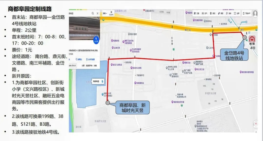 專線開(kāi)通后,商都阜園項(xiàng)目租戶及業(yè)主實(shí)現(xiàn)了“出門(mén)即坐上公交,下車即地鐵口”的通勤效率新格局。線路途徑南臺(tái)路、鼎元街文德路、南三環(huán)輔路;中途包含超市、理發(fā)店、小商品城等便民商業(yè)點(diǎn)。無(wú)論是上班還是購(gòu)物,都能享受到高效、舒適的出行體驗(yàn)。線路單程2公里,除直達(dá)地鐵口外也可換乘199路、38路、S121路、B3路。不僅解決了租戶的通勤難題,也為周邊社區(qū)居民提供了便利,得到了大家的一致好評(píng)。