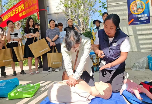 在互動體驗(yàn)環(huán)節(jié),工作人員展示結(jié)繩演練并指導(dǎo)實(shí)操,保障群眾掌握基本結(jié)繩逃生技能。現(xiàn)場還設(shè)置了仿真人體模型,醫(yī)護(hù)人員指導(dǎo)群眾進(jìn)行心肺復(fù)蘇操作練習(xí),同時為群眾演示海姆立克急救法操作流程。