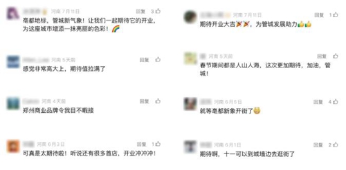“讓我們一起期待它的開(kāi)業(yè),為這座城市增添一抹亮麗的色彩!”“感覺(jué)非常高大上,期待值拉滿了”“期待開(kāi)業(yè)大吉,為管城發(fā)展助力”從這些稿件中的評(píng)論區(qū),我們能看出市民對(duì)“亳都·新象”的期待以及鄭州文商旅融合發(fā)展的信心。