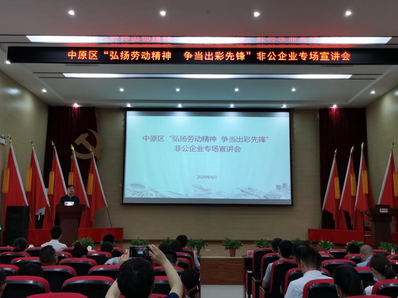 為充分發(fā)揮中原新區(qū)聯(lián)合黨委基層黨校在黨的理論教育上的主陣地作用和在黨性教育上的大熔爐作用,在黨校中弘揚(yáng)習(xí)近平總書記給圓方集團(tuán)職工的重要回信精神,真正使聯(lián)合黨委基層黨校成為黨員干部思想政治教育的紅色殿堂,6月5日和9日,中原區(qū)“弘揚(yáng)勞動(dòng)精神 爭(zhēng)當(dāng)出彩先鋒”企業(yè)、班組專場(chǎng)及非公企業(yè)專場(chǎng)宣講會(huì)在中原新區(qū)聯(lián)合黨委基層黨校舉行,中原區(qū)委組織部組織科科長(zhǎng)蔚光勛、西流湖公司副總經(jīng)理昌磊出席活動(dòng),共有來(lái)自中原區(qū)各街道辦事處、各企業(yè)的150余名黨員職工聆聽(tīng)了宣講。